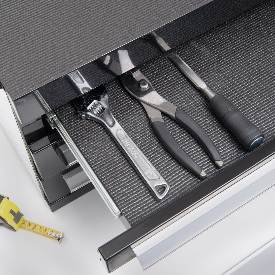 These Solid Grip Liners offer a practical and stylish solution for protecting surfaces from spills, damage, and scratches. Featuring a soft, cushioned, non-adhesive grip, these liners stay in place without slipping while minimizing noise and protecting fragile items like glassware. Built for durability, they resist tearing and are washable, making them reusable for long-term use. Their solid material allows them to be used across wire racks, drawers, cabinets, countertops, shelves, and toolboxes.